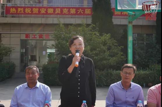 集團(tuán)工會(huì)主席張華宣布貝克制藥2020年慶十一運(yùn)動(dòng)會(huì)開幕,縣總工會(huì)黨組書記、副主席劉靜,貝克原料藥基地總經(jīng)理張偉參加活動(dòng)。
