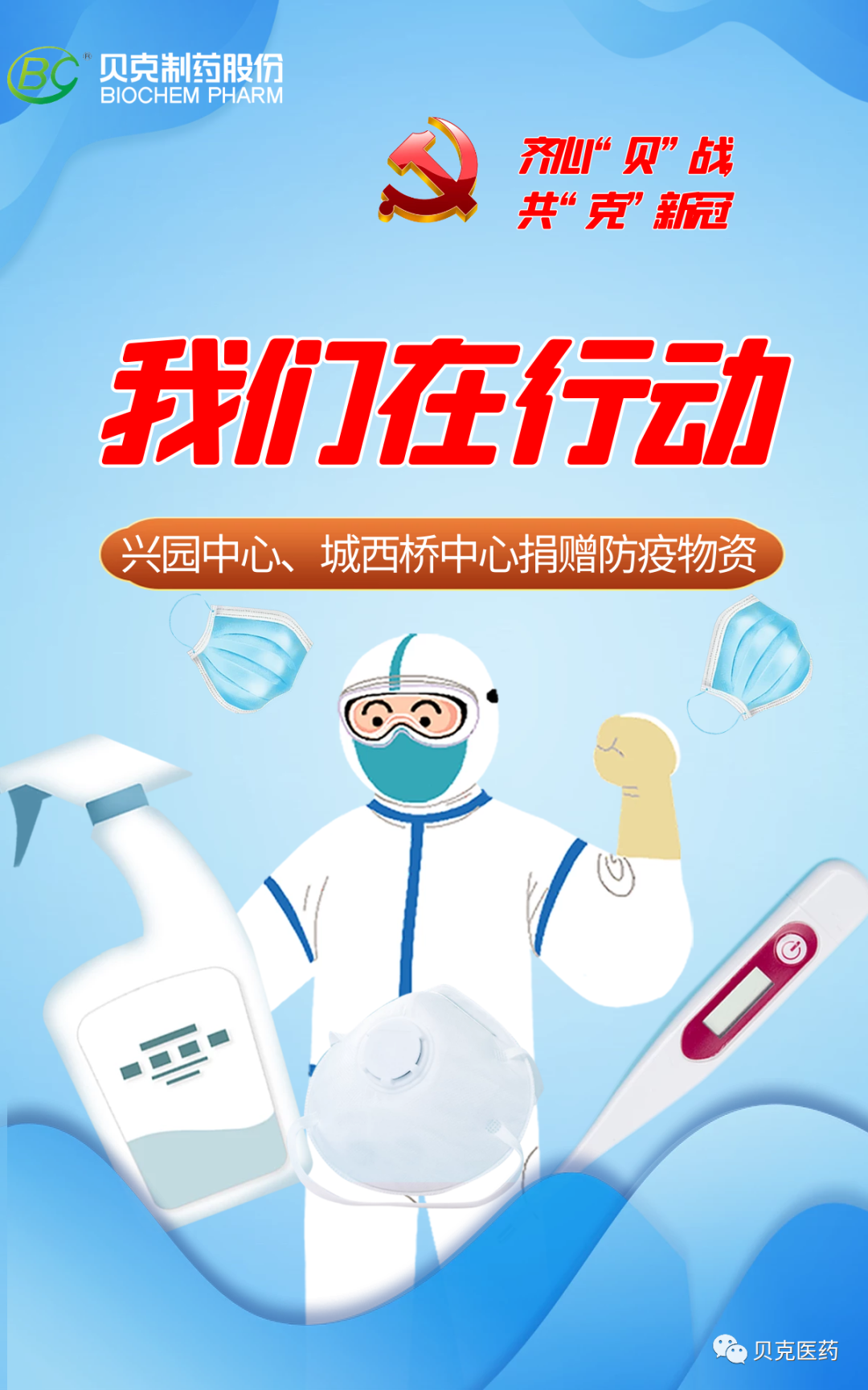 齊心“貝”戰(zhàn) 共“克”新冠--貝克制藥、貝克生物黨支部向高新區(qū)興園中心、城西橋中心捐贈(zèng)防疫物資